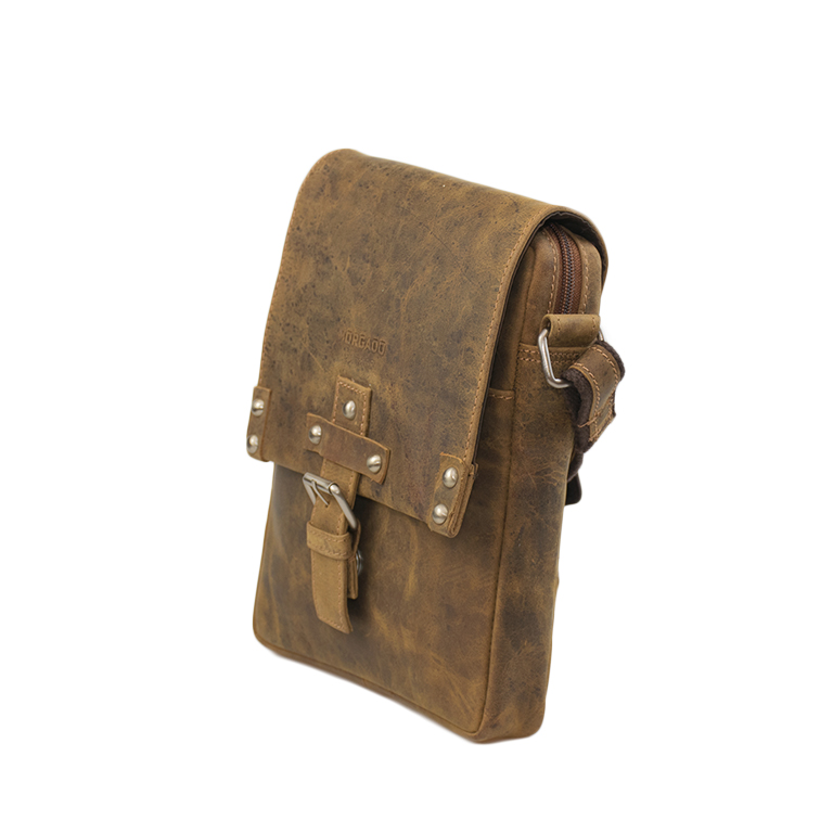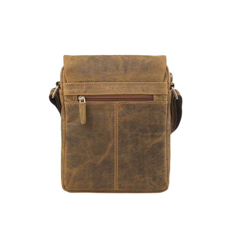 Bolso unisex con asa bandolera regulable. Tapeta con hebilla e imán. Cremallera trasera.