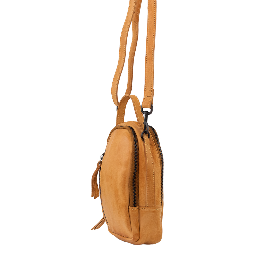 Bolsito pequeño unisex. Asa de mano y bandolera regulable. Cremallera delantera.