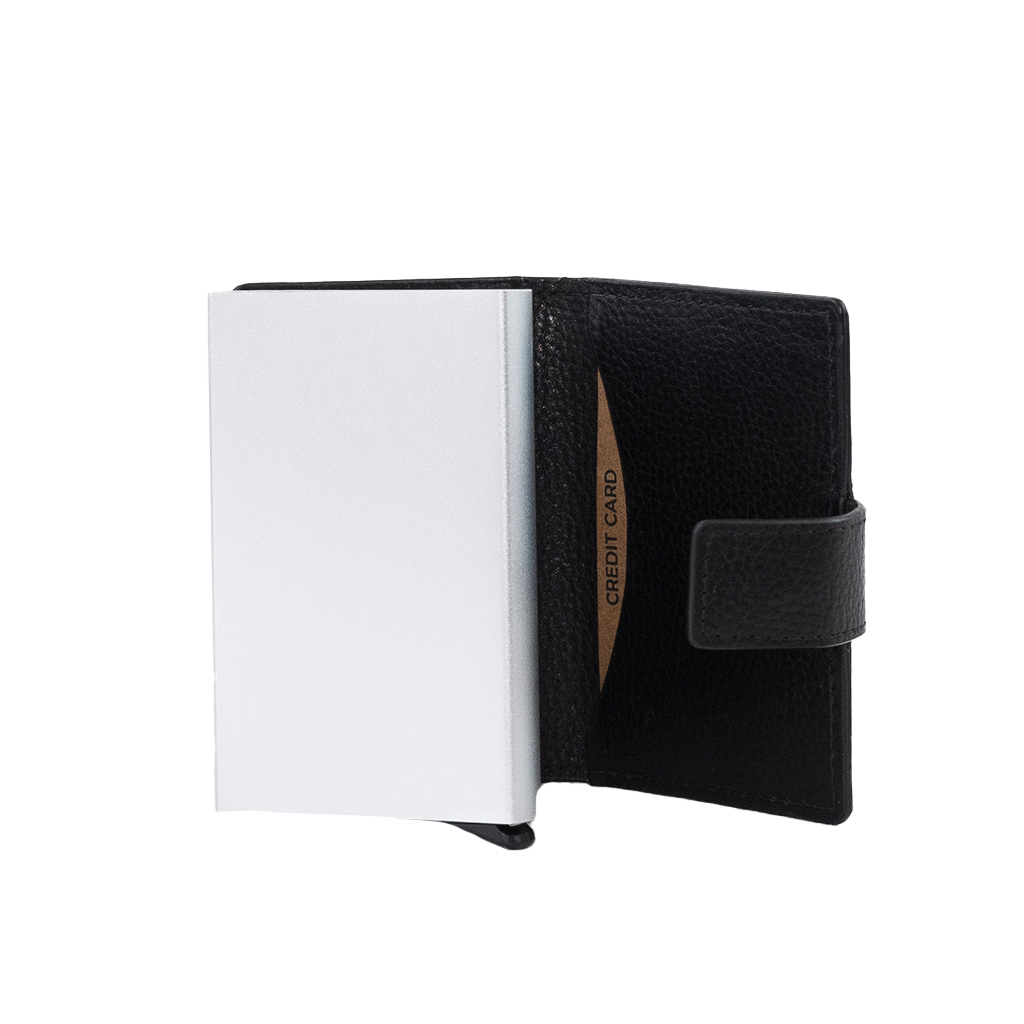 Tarjetero unisex con broche.