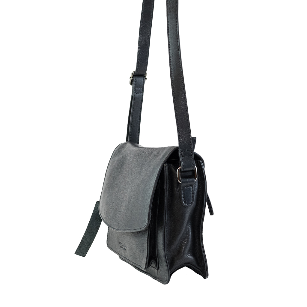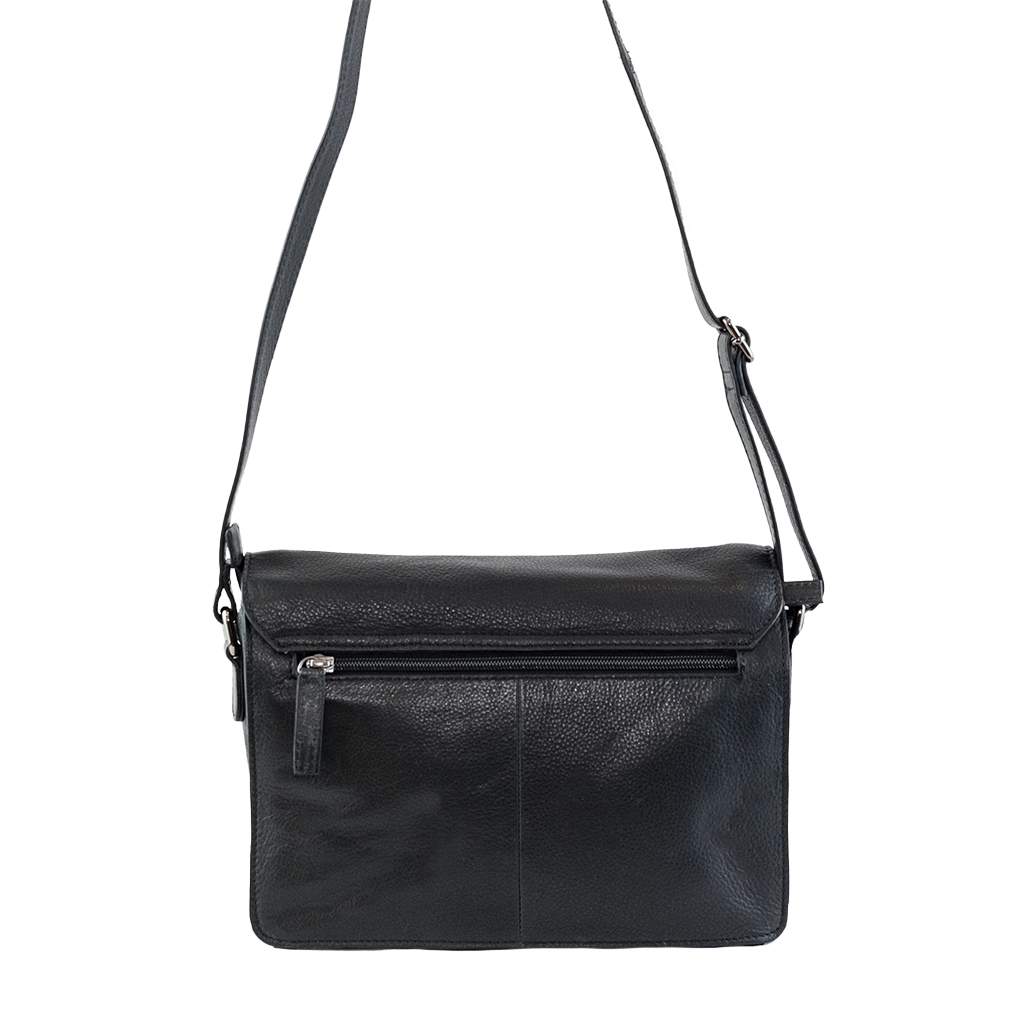 Bolso señora con asa bandolera regulable. Tapeta delantera con imán. Bolsillo delantero. Cremallera trasera.